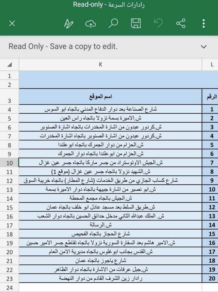 وهذه قائمة بمواقع الأنظمة التي سيتم تشغيلها ضمن حدود أمانة عمّان: