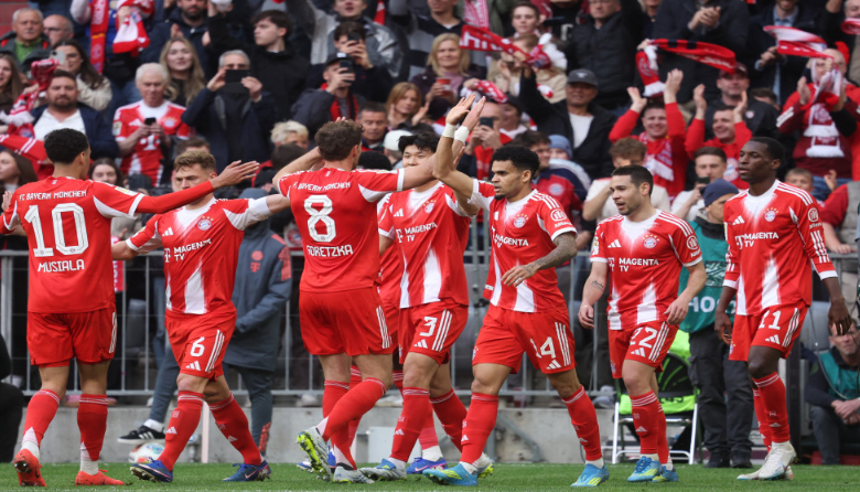 عمان بوست – توّج بايرن ميونيخ بلقب الدوري الألماني لكرة القدم للمرة الخامسة والثلاثين في تاريخه، قبل أربع جولات من نهاية الموسم، بعد فوزه على ضيفه شتوتغارت بنتيجة 4-2، الأحد، على ملعب أليانز أرينا ضمن منافسات المرحلة 30.