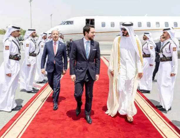 وكان في استقبال سموه لدى وصوله مطار الدوحة الدولي الشيخ خليفة بن حمد بن خليفة آل ثاني، وزير الداخلية وقائد قوة الأمن الداخلي “لخويا”، إلى جانب السفير الأردني لدى قطر زيد مفلح اللوزي.