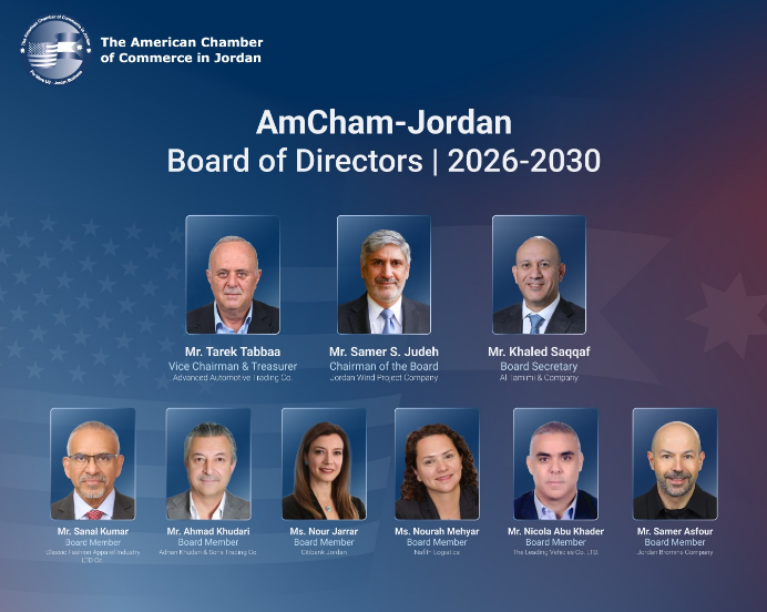 عمان بوست – انتخب سامر جودة، رئيسا لغرفة التجارة الأميركية، لدورة ثانية خلال اجتماع الهيئة العامة العادي، فيما انتخب طارق الطباع نائبا للرئيس وأمينا للصندوق وخالد السقاف أمينا للسر.