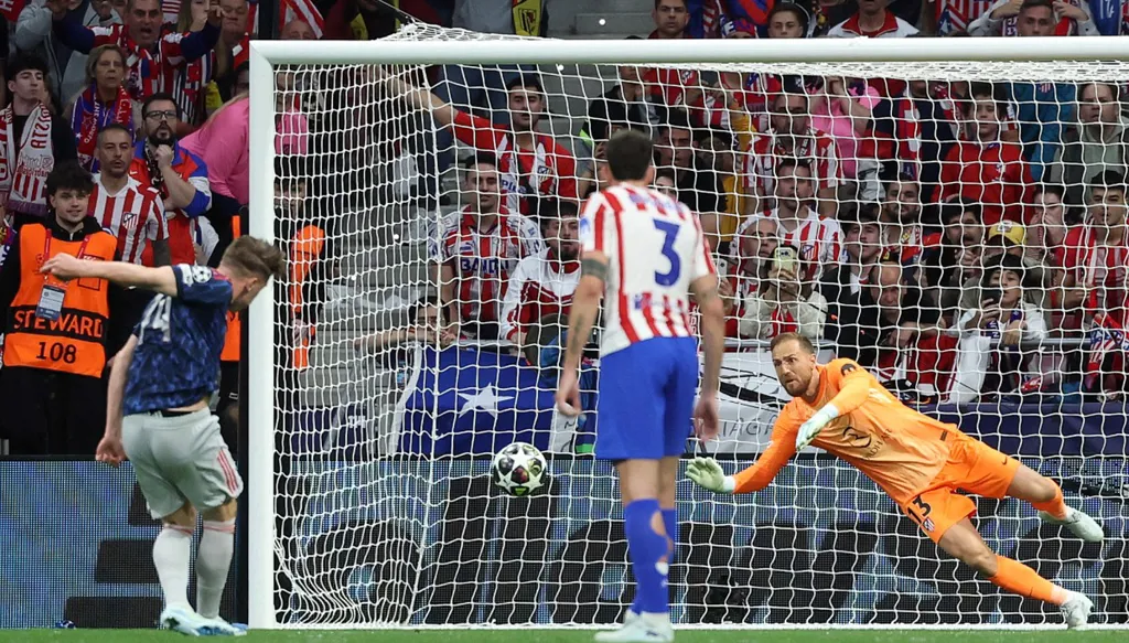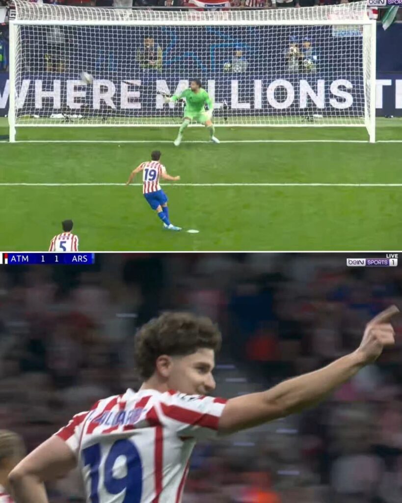 وكان أرسنال قد نجح في فك شيفرة الدفاع المدريدي بعد حصول يوكيريس على ركلة جزاء، نفذها بنجاح مانحاً التقدم لفريقه (44)، قبل أن يرد أتلتيكو بركلة جزاء مماثلة إثر لمسة يد على المدافع بن وايت، ترجمها ألفاريس إلى هدف التعادل (56).