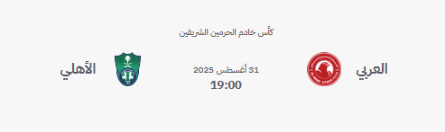 عمان بوست – يدخل أهلي جدة اليوم الأحد مواجهة مصيرية في كأس خادم الحرمين الشريفين، حيث يحل ضيفًا على العربي في دور الـ32 على ملعب مدينة الملك عبدالله الرياضية ببريدة، في محاولة لكسر العقدة الطويلة التي تلاحقه في البطولة.