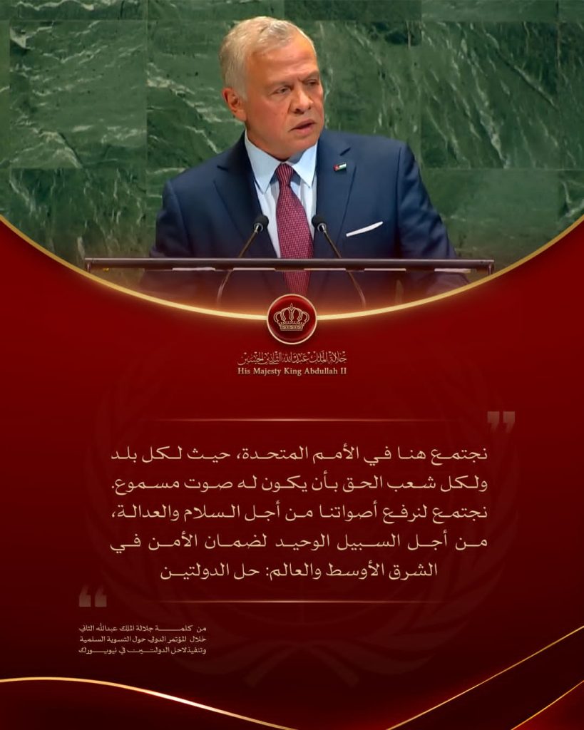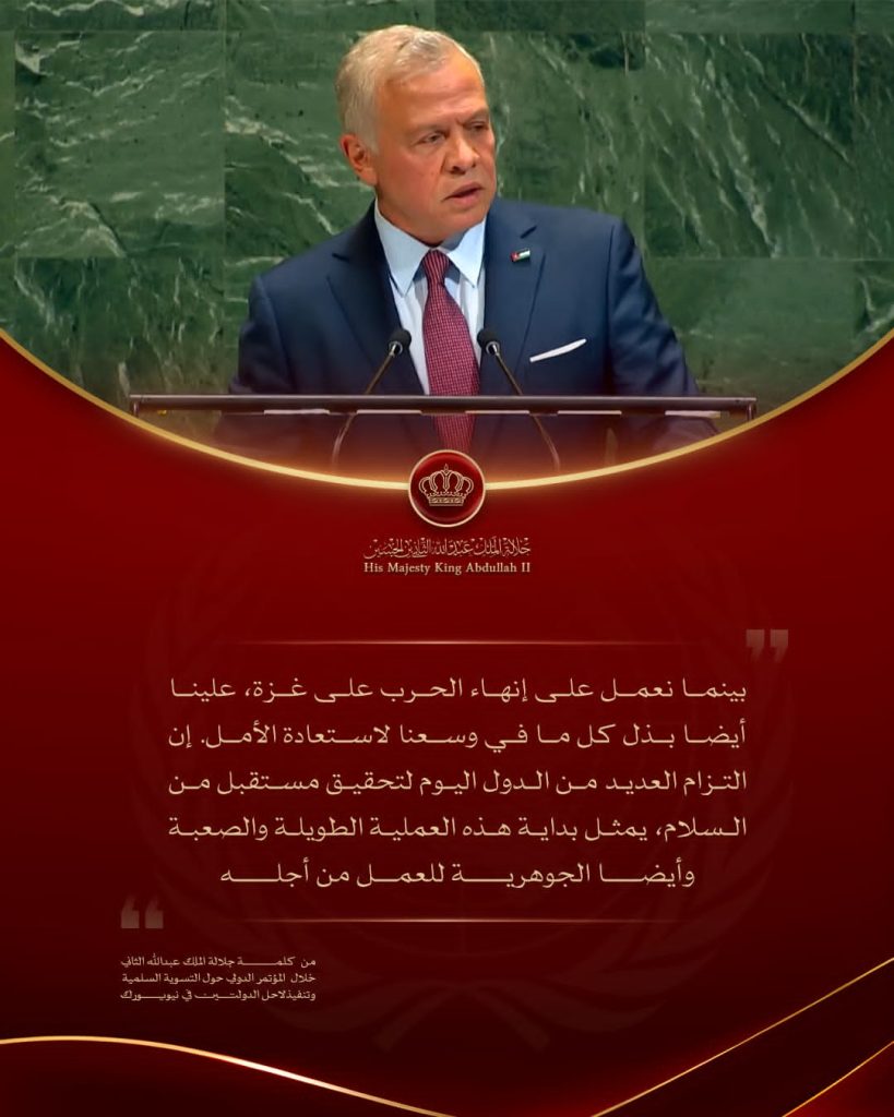 النص الكامل لكلمة جلالة الملك خلال المؤتمر الدولي حول التسوية السلمية وتنفيذ حل الدولتين في نيويورك