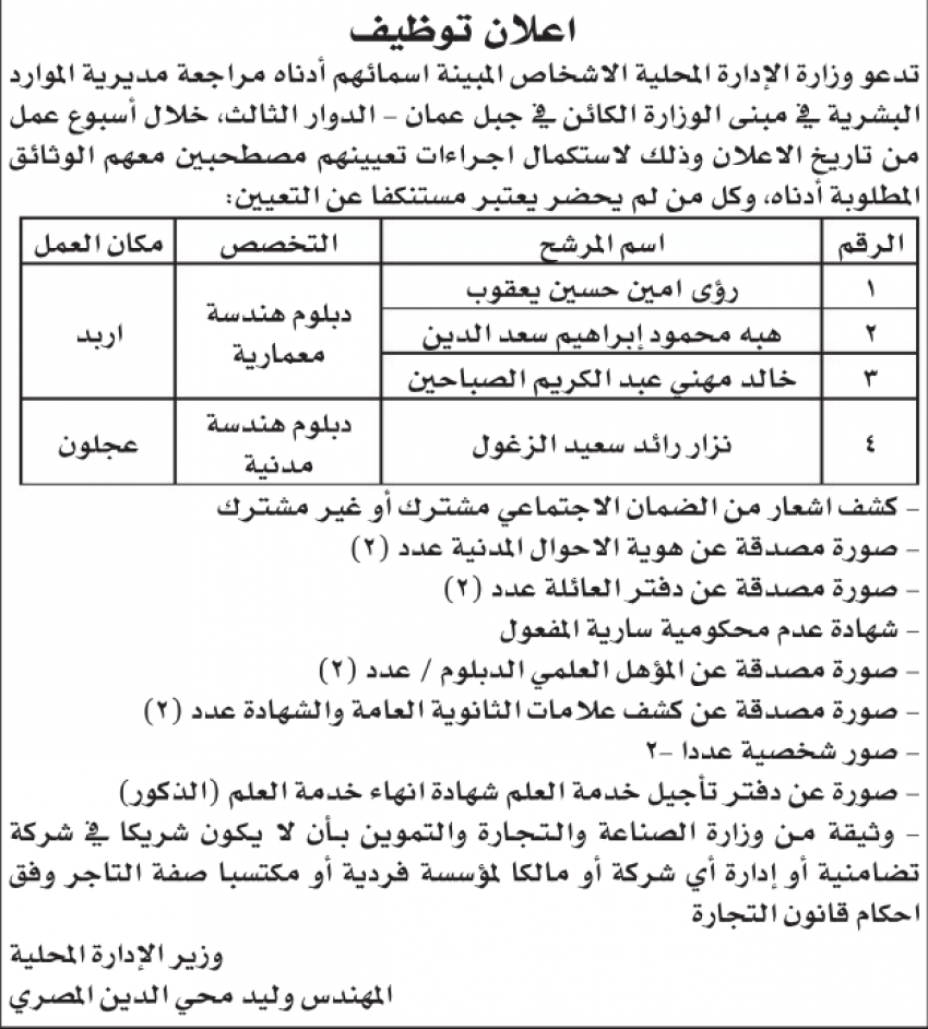 وظائف حكومية شاغرة ومدعوون للتعيين (أسماء)