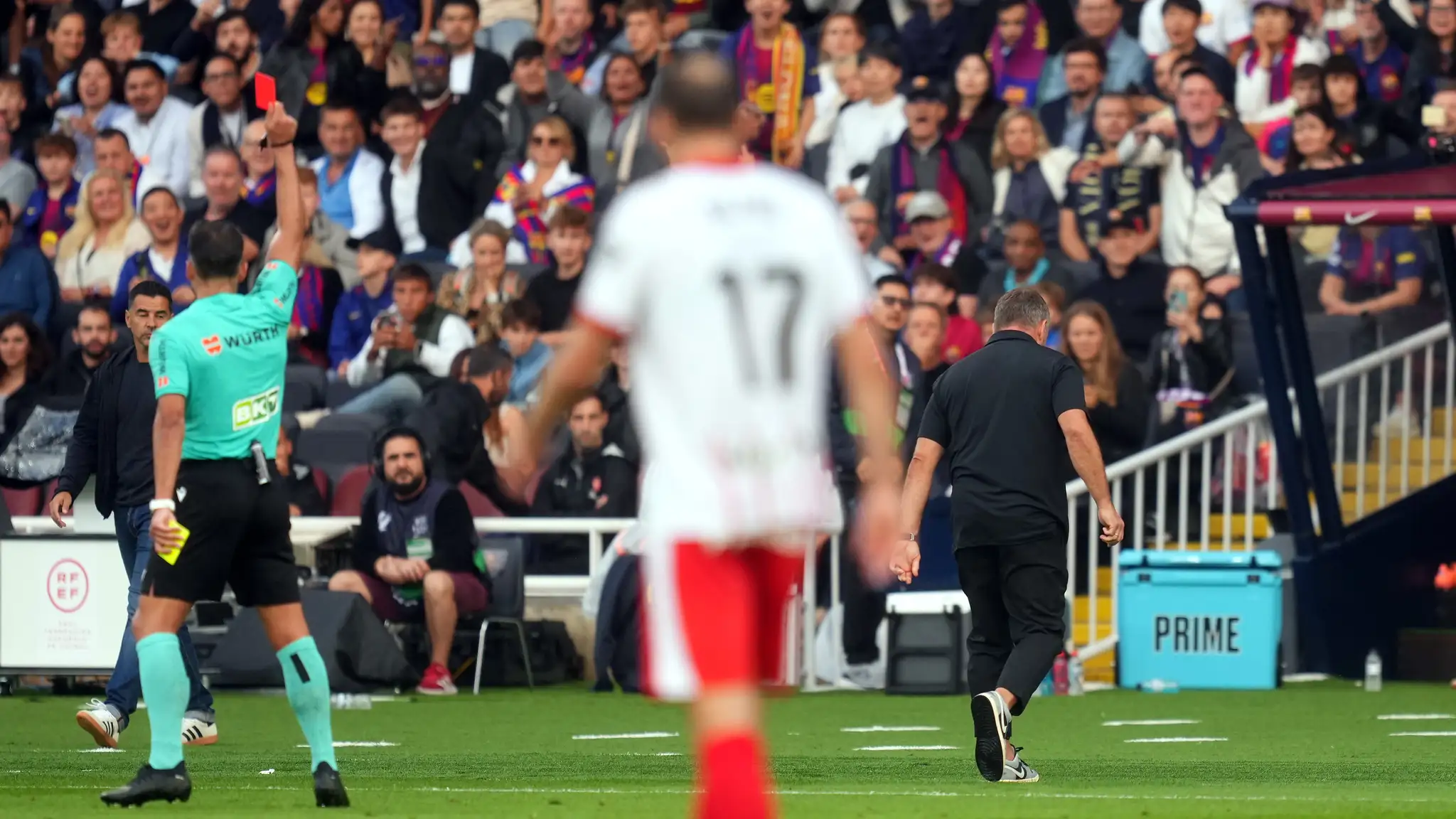 وشهدت الدقائق الأخيرة توترًا كبيرًا بعد أن أشهر الحكم البطاقة الحمراء في وجه المدرب فليك في الدقيقة (90+1)، بسبب اعتراضه على القرارات التحكيمية، لكن الفريق الكتالوني رفض الاستسلام وتمكن من حسم المواجهة في اللحظات الحاسمة.