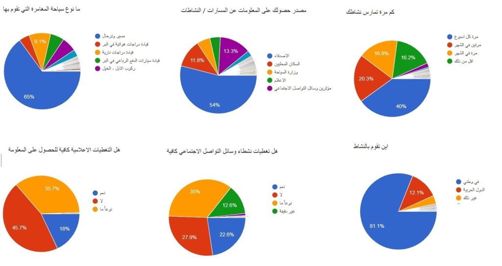 • عقد دورات وتنظيم جولات للإعلاميين ونشطاء وسائل التواصل الاجتماعي لتمكينهم من إنتاج تقارير مهنية تسهم في تعزيز هذا النوع من السياحة. وبيّن أن هذه الجهود من شأنها توجيه أنظار عشّاق المغامرة للسفر عبر الحدود، خاصة أن 80% من العينة البحثية يمارسون نشاطاتهم عدة مرات شهريًا، ما يدل على وجود رغبة قوية وقدرة مالية عالية.